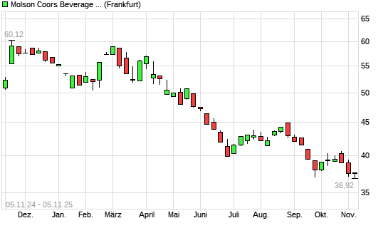 Mit dem Rücksetzer auf 36,92 EUR hat die Molson Coors Brewing-Aktie (ISIN US60871R2094) am 04.11.2025 ein neues 3-Jahres-Tief erreicht und damit den Kurs vom 24.09.2025 eingestellt.Die ...weiterlesen