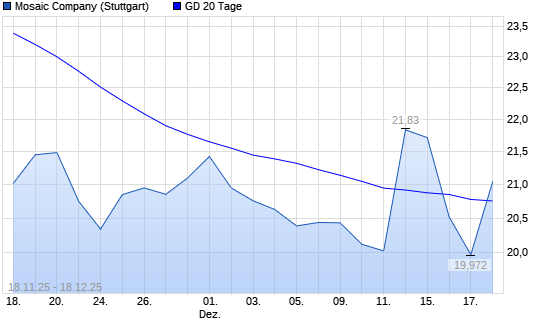 Mit dem Rücksetzer auf 20,54 EUR hat die Mosaic-Aktie am 17.12.2025 die 20-Tage-Linie nach unten gekreuzt.Die Mosaic-Aktie befindet sich seit dem 10.10.2025 im langfristigen Abwärtstrend ...weiterlesen