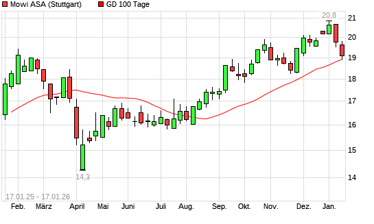 Mit dem Rücksetzer auf 19,02 EUR hat die Mowi ASA-Aktie am 16.01.2026 die 100-Tage-Linie nach unten gekreuzt.Die Mowi ASA-Aktie befindet sich seit dem 20.08.2025 im langfristigen Aufwärtstrend ...weiterlesen