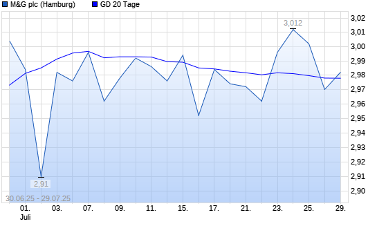 Mit dem Anstieg auf 3,00 EUR hat die M&G-Aktie am 28.07.2025 die 20-Tage-Linie nach oben gekreuzt.Die M&G-Aktie befindet sich seit dem 02.05.2025 im langfristigen Aufwärtstrend und hat in ...weiterlesen