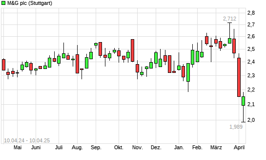 Mit dem Rücksetzer auf 2,00 EUR hat die M&G-Aktie (ISIN GB00BKFB1C65) am 09.04.2025 ein neues 12-Monats-Tief erreicht und damit den Kurs vom 07.04.2025 eingestellt.Die ...weiterlesen