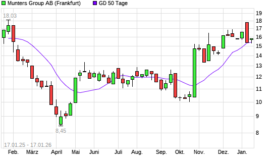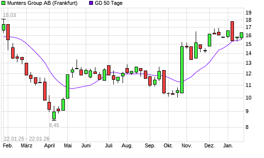 Mit dem Anstieg auf 16,34 EUR hat die Munters Group B-Aktie am 21.01.2026 die 50-Tage-Linie nach oben gekreuzt.Die Munters Group B-Aktie befindet sich seit dem 24.10.2025 im langfristigen Aufwärtstrend ...weiterlesen