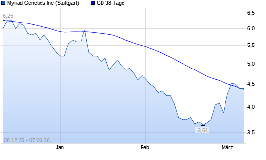 Mit dem Rücksetzer auf 4,36 EUR hat die Myriad Genetics-Aktie am 06.03.2026 die 38-Tage-Linie nach unten gekreuzt.Die Myriad Genetics-Aktie befindet sich seit dem 14.01.2026 ...weiterlesen
