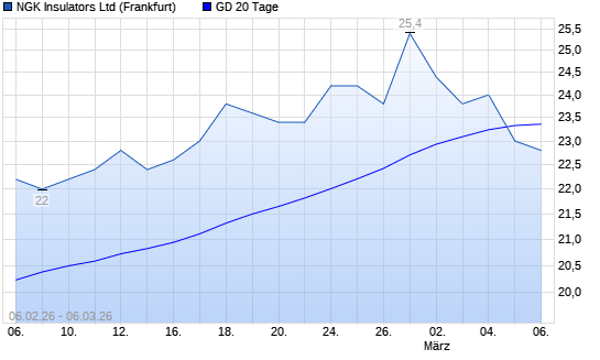 Mit dem Rücksetzer auf 23,00 EUR hat die NGK Insulators-Aktie am 05.03.2026 die 20-Tage-Linie nach unten gekreuzt.Die NGK Insulators-Aktie befindet sich seit dem 01.08.2025 ...weiterlesen