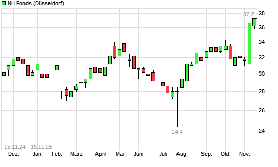 Mit dem Anstieg auf 37,40 EUR hat die NH Foods-Aktie (ISIN JP3743000006) am 14.11.2025 ein neues 3-Jahres-Hoch erreicht und damit den Kurs vom 07.11.2025 eingestellt.Die NH Foods-Aktie befindet ...weiterlesen