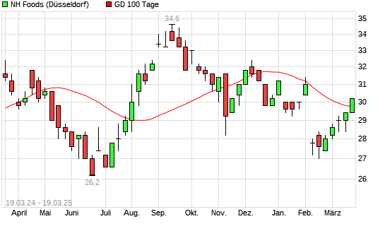 Mit dem Anstieg auf 30,00 EUR hat die NH Foods-Aktie am 18.03.2025 die 100-Tage-Linie nach oben gekreuzt.Die NH Foods-Aktie befindet sich seit dem 03.02.2025 im langfristigen Abwärtstrend und ...weiterlesen