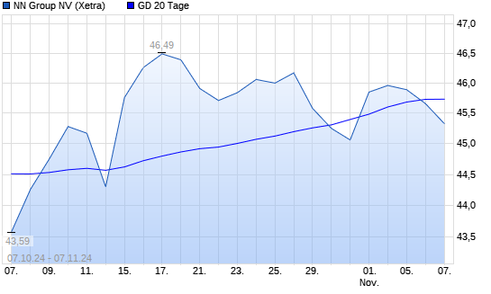 Mit dem Rücksetzer auf 45,58 EUR hat die NN Group-Aktie am 06.11.2024 die 20-Tage-Linie nach unten gekreuzt.Die NN Group-Aktie befindet sich seit dem 29.11.2023 im langfristigen Aufwärtstrend ...weiterlesen