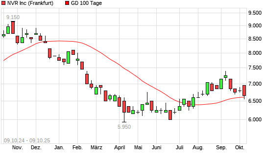 Mit dem Rücksetzer auf 6.550,00 EUR hat die NVR-Aktie am 08.10.2025 die 100-Tage-Linie nach unten gekreuzt.Die NVR-Aktie befindet sich seit dem 07.10.2025 im langfristigen Abwärtstrend ...weiterlesen