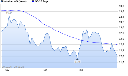 Mit dem Rücksetzer auf 12,10 EUR hat die Nabaltec-Aktie am 28.01.2026 die 38-Tage-Linie nach unten gekreuzt.Die Nabaltec-Aktie befindet sich seit dem 08.10.2025 im langfristigen Abwärtstrend ...weiterlesen