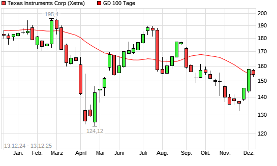 Mit dem Anstieg auf 154,82 EUR hat die Texas Instruments-Aktie am 12.12.2025 die 100-Tage-Linie nach oben gekreuzt.Die Texas Instruments-Aktie befindet sich seit dem 04.09.2025 im langfristigen ...weiterlesen