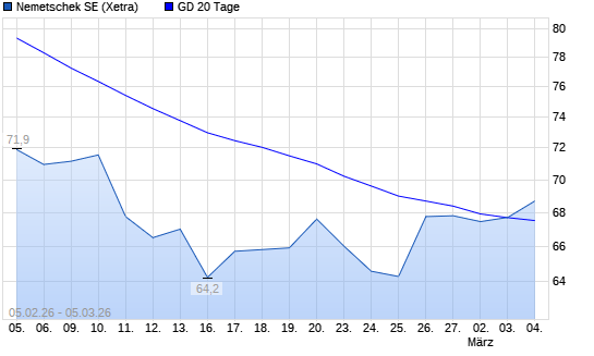 Mit dem Anstieg auf 68,70 EUR hat die Nemetschek-Aktie am 04.03.2026 die 20-Tage-Linie nach oben gekreuzt.Die Nemetschek-Aktie befindet sich seit dem 09.09.2025 im ...weiterlesen