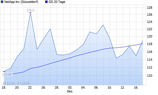 Mit dem Anstieg auf 122,08 EUR hat die NetApp-Aktie am 16.12.2024 die 20-Tage-Linie nach oben gekreuzt.Die NetApp-Aktie befindet sich seit dem 26.05.2023 im langfristigen Aufwärtstrend und hat ...weiterlesen