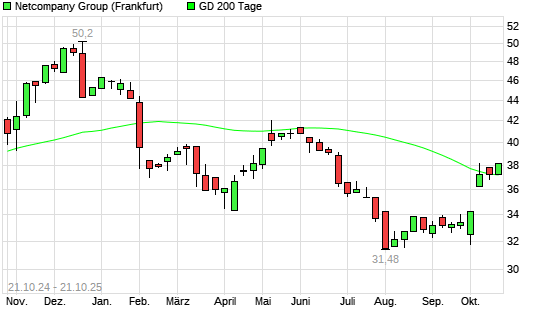 Mit dem Anstieg auf 38,22 EUR hat die Netcompany Group-Aktie am 20.10.2025 die 200-Tage-Linie nach oben gekreuzt.Die Netcompany Group-Aktie befand sich seit dem 17.10.2025 im langfristigen Abwärtstrend ...weiterlesen