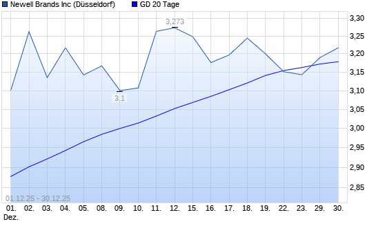 Mit dem Anstieg auf 3,21 EUR hat die Newell Brands-Aktie am 29.12.2025 die 20-Tage-Linie nach oben gekreuzt.Die Newell Brands-Aktie befindet sich seit dem 10.02.2025 im langfristigen Abwärtstrend ...weiterlesen
