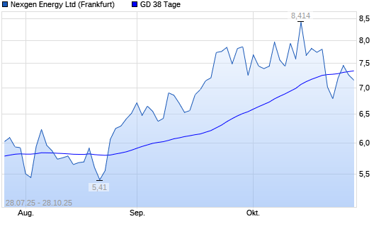 Mit dem Rücksetzer auf 7,26 EUR hat die Nexgen Energy-Aktie am 27.10.2025 die 38-Tage-Linie nach unten gekreuzt.Die Nexgen Energy-Aktie befindet sich seit dem 25.08.2025 im langfristigen ...weiterlesen