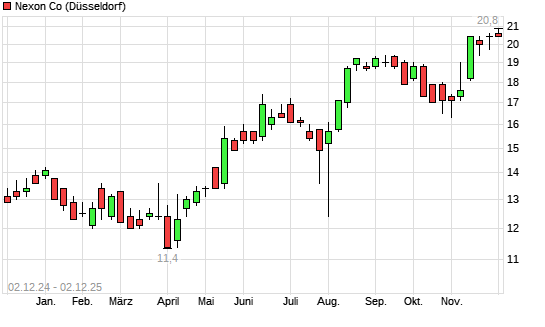Mit dem Anstieg auf 21,00 EUR hat die Nexon-Aktie (ISIN JP3758190007) am 01.12.2025 ein neues 12-Monats-Hoch erreicht und damit den Kurs vom 28.11.2025 eingestellt.Die Nexon-Aktie befindet sich ...weiterlesen