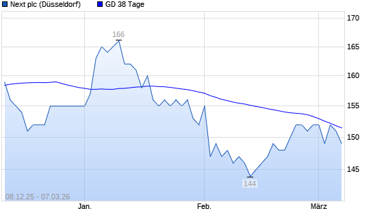 Mit dem Anstieg auf 153,00 EUR hat die Next-Aktie am 06.03.2026 die 38-Tage-Linie nach oben gekreuzt.Die Next-Aktie befindet sich seit dem 05.03.2026 im langfristigen Aufwärtstrend und ...weiterlesen