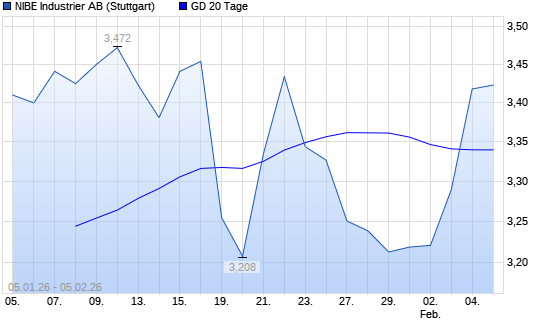 Mit dem Anstieg auf 3,39 EUR hat die Nibe Industrier-Aktie am 04.02.2026 die 20-Tage-Linie nach oben gekreuzt.Die Nibe Industrier-Aktie befindet sich seit dem 26.08.2025 im langfristigen Abwärtstrend ...weiterlesen