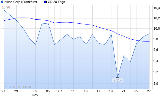 Mit dem Anstieg auf 9,84 EUR hat die Nikon-Aktie am 26.11.2025 die 20-Tage-Linie nach oben gekreuzt.Die Nikon-Aktie befindet sich seit dem 21.11.2025 im langfristigen Aufwärtstrend und hat in ...weiterlesen