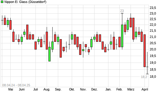 Mit dem Rücksetzer auf 18,20 EUR hat die Nippon Electric Glass-Aktie (ISIN JP3733400000) am 07.04.2025 ein neues 12-Monats-Tief erreicht und damit den Kurs vom 05.08.2024 eingestellt.Die ...weiterlesen