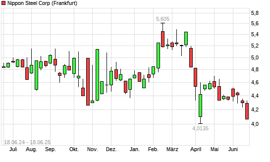 Mit dem Rücksetzer auf 16,38 EUR hat die Nippon Steel-Aktie (ISIN JP3381000003) am 17.06.2025 ein neues 12-Monats-Tief erreicht und damit den Kurs vom 07.04.2025 eingestellt.Die Nippon ...weiterlesen