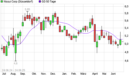 Mit dem Rücksetzer auf 5,10 EUR hat die Nippon Suisan Kaisha-Aktie am 23.06.2025 die 50-Tage-Linie nach unten gekreuzt.Die Nippon Suisan Kaisha-Aktie befindet sich seit dem 23.04.2025 im ...weiterlesen