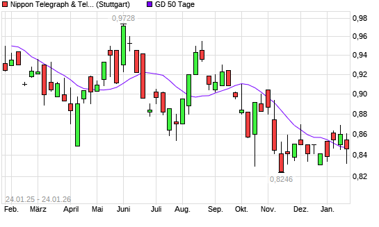 Mit dem Rücksetzer auf 0,83 EUR hat die Nippon Telegraph & Telephone-Aktie am 23.01.2026 die 50-Tage-Linie nach unten gekreuzt.Die Nippon Telegraph & Telephone-Aktie befindet sich seit ...weiterlesen