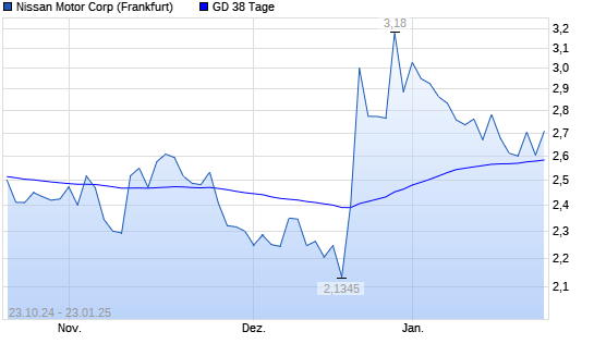 Mit dem Rücksetzer auf 2,60 EUR hat die Nissan Motor-Aktie am 22.01.2025 die 38-Tage-Linie nach unten gekreuzt.Die Nissan Motor-Aktie befindet sich seit dem 08.01.2025 im langfristigen ...weiterlesen