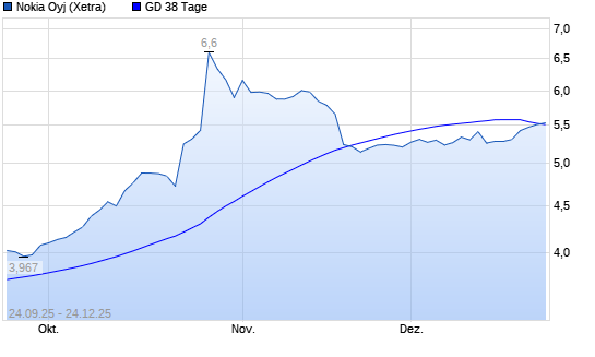 Mit dem Anstieg auf 5,52 EUR hat die Nokia-Aktie am 23.12.2025 die 38-Tage-Linie nach oben gekreuzt.Die Nokia-Aktie befindet sich seit dem 08.10.2025 im langfristigen Aufwärtstrend und hat in ...weiterlesen