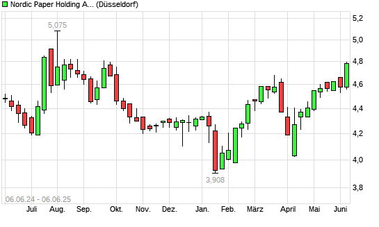 Mit dem Anstieg auf 4,73 EUR hat die Nordic Paper-Aktie (ISIN SE0014808838) am 05.06.2025 ein neues 6-Monats-Hoch erreicht und damit den Kurs vom 04.06.2025 eingestellt.Die Nordic Paper-Aktie ...weiterlesen