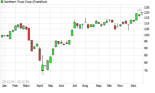 Mit dem Anstieg auf 120,00 EUR hat die Northern Trust-Aktie (ISIN US6658591044) am 22.12.2025 ein neues All-Time-High erreicht und damit den Kurs vom 12.12.2025 eingestellt.Die Northern Trust-Aktie ...weiterlesen