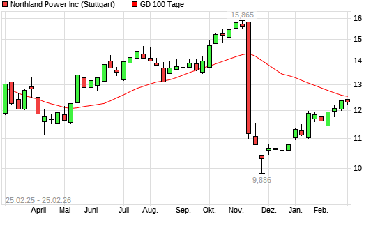 Mit dem Anstieg auf 12,86 EUR hat die Northland Power-Aktie am 26.02.2026 die 100-Tage-Linie nach oben gekreuzt.Die Northland Power-Aktie befindet sich seit dem 13.11.2025 im ...weiterlesen