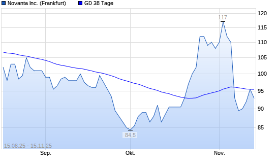 Mit dem Rücksetzer auf 93,00 EUR hat die Novanta-Aktie am 14.11.2025 die 38-Tage-Linie nach unten gekreuzt.Die Novanta-Aktie befindet sich seit dem 07.11.2025 im langfristigen Abwärtstrend ...weiterlesen