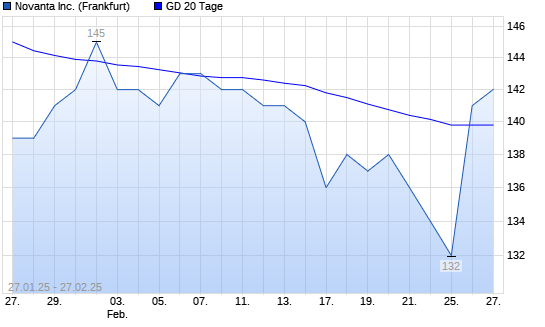 Mit dem Anstieg auf 141,00 EUR hat die Novanta-Aktie am 26.02.2025 die 20-Tage-Linie nach oben gekreuzt.Die Novanta-Aktie befindet sich seit dem 19.12.2024 im langfristigen Abwärtstrend und ...weiterlesen