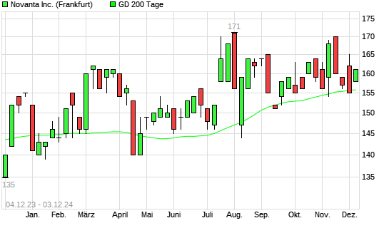 Mit dem Anstieg auf 158,00 EUR hat die Novanta-Aktie am 02.12.2024 die 200-Tage-Linie nach oben gekreuzt.Die Novanta-Aktie befand sich seit dem 28.11.2024 im langfristigen Abwärtstrend und hat ...weiterlesen
