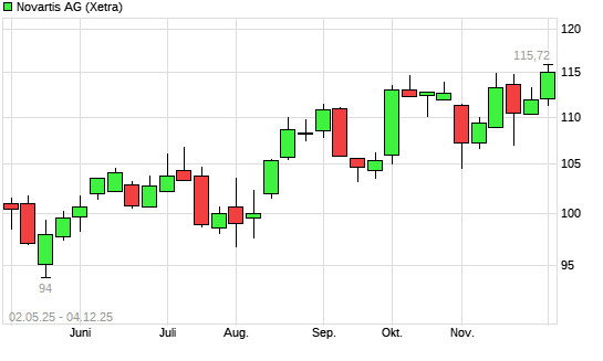 Mit dem Anstieg auf 116,08 EUR hat die Novartis-Aktie (ISIN CH0012005267) am 03.12.2025 ein neues All-Time-High erreicht und damit den Kurs vom 02.12.2025 eingestellt.Die Novartis-Aktie befindet ...weiterlesen