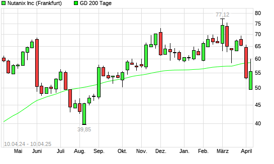 Mit dem Anstieg auf 60,12 EUR hat die Nutanix-Aktie am 09.04.2025 die 200-Tage-Linie nach oben gekreuzt.Die Nutanix-Aktie befand sich seit dem 03.04.2025 im langfristigen Abwärtstrend und hat ...weiterlesen