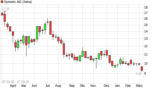 Mit dem Rücksetzer auf 9,30 EUR hat die Nynomic-Aktie (ISIN DE000A0MSN11) am 06.03.2026 ein neues 5-Jahres-Tief erreicht und damit den Kurs vom 04.03.2026 ...weiterlesen
