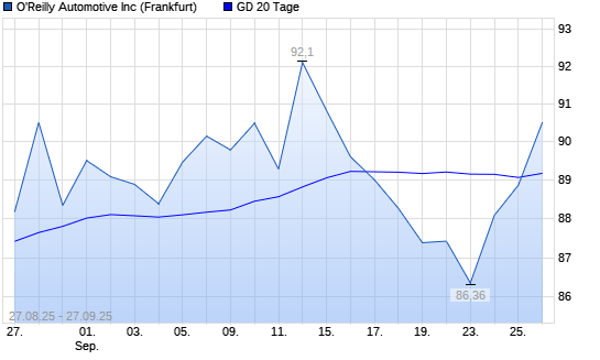 Mit dem Anstieg auf 90,50 EUR hat die O'Reilly Automotive-Aktie am 26.09.2025 die 20-Tage-Linie nach oben gekreuzt.Die O'Reilly Automotive-Aktie befindet sich seit dem 25.07.2025 im langfristigen ...weiterlesen