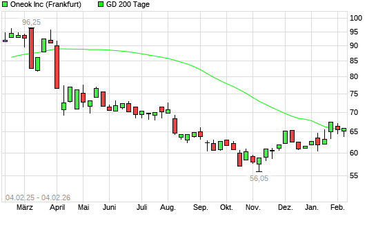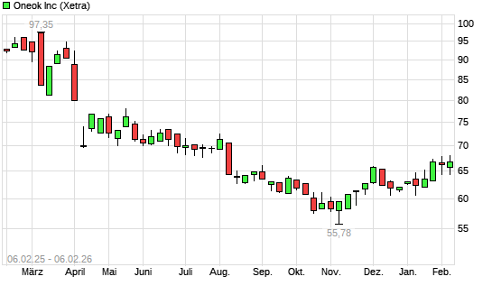 Mit dem Anstieg auf 67,94 EUR hat die ONEOK-Aktie (ISIN US6826801036) am 05.02.2026 ein neues 6-Monats-Hoch erreicht und damit den Kurs vom 23.01.2026 eingestellt.Die ONEOK-Aktie befindet sich ...weiterlesen
