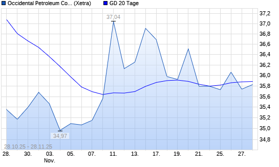 Mit dem Rücksetzer auf 35,71 EUR hat die Occidental Petroleum-Aktie am 27.11.2025 die 20-Tage-Linie nach unten gekreuzt.Die Occidental Petroleum-Aktie befindet sich seit dem 29.09.2025 ...weiterlesen