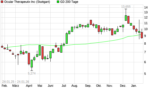 Mit dem Rücksetzer auf 9,21 EUR hat die Ocular Therapeutix-Aktie am 23.01.2026 die 200-Tage-Linie nach unten gekreuzt.Die Ocular Therapeutix-Aktie befand sich seit dem 15.01.2026 im langfristigen ...weiterlesen