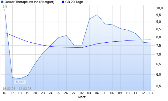 Mit dem Rücksetzer auf 7,59 EUR hat die Ocular Therapeutix-Aktie am 13.03.2026 die 20-Tage-Linie nach unten gekreuzt.Die Ocular Therapeutix-Aktie befindet sich seit dem 17.02.2026 ...weiterlesen