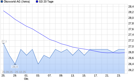 Mit dem Rücksetzer auf 26,30 EUR hat die Ökoworld-Aktie am 24.10.2025 die 20-Tage-Linie nach unten gekreuzt.Die Ökoworld-Aktie befindet sich seit dem 09.09.2025 im langfristigen Abwärtstrend ...weiterlesen