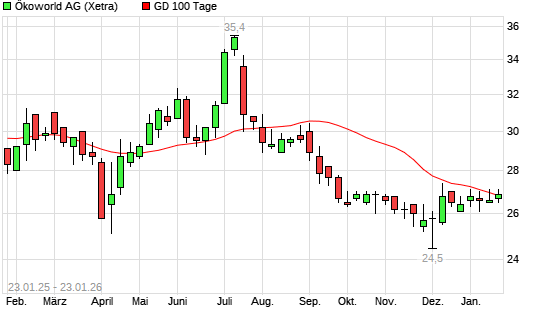 Mit dem Anstieg auf 26,80 EUR hat die Ökoworld-Aktie am 22.01.2026 die 100-Tage-Linie nach oben gekreuzt.Die Ökoworld-Aktie befindet sich seit dem 09.09.2025 im langfristigen Abwärtstrend ...weiterlesen