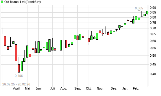 Mit dem Anstieg auf 0,86 EUR hat die Old Mutual Ltd-Aktie (ISIN ZAE000255360) am 25.02.2026 ein neues 3-Jahres-Hoch erreicht und damit den Kurs vom 29.01.2026 eingestellt.Die Old ...weiterlesen