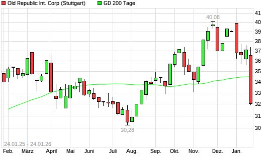 Mit dem Rücksetzer auf 32,07 EUR hat die Old Republic International-Aktie am 23.01.2026 die 200-Tage-Linie nach unten gekreuzt.Die Old Republic International-Aktie befand sich seit dem ...weiterlesen