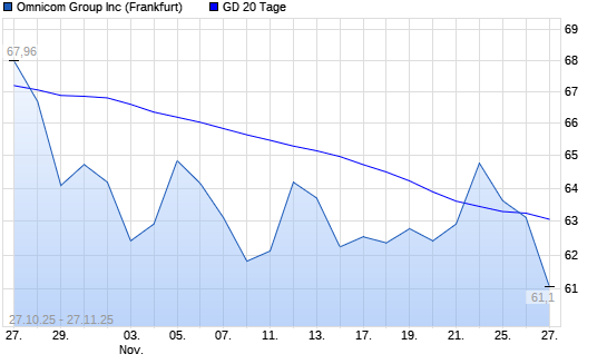 Mit dem Rücksetzer auf 63,12 EUR hat die Omnicom Group-Aktie am 26.11.2025 die 20-Tage-Linie nach unten gekreuzt.Die Omnicom Group-Aktie befindet sich seit dem 28.10.2025 im langfristigen ...weiterlesen