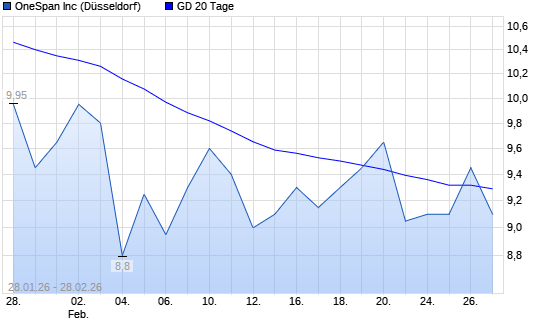 Mit dem Rücksetzer auf 9,30 EUR hat die OneSpan-Aktie am 27.02.2026 die 20-Tage-Linie nach unten gekreuzt.Die OneSpan-Aktie befindet sich seit dem 11.03.2025 im ...weiterlesen