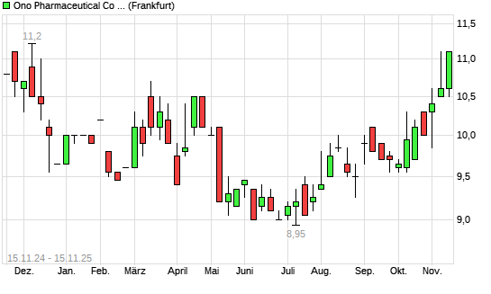 Mit dem Anstieg auf 11,10 EUR hat die Ono Pharmaceut.-Aktie (ISIN JP3197600004) am 14.11.2025 ein neues 6-Monats-Hoch erreicht und damit den Kurs vom 12.11.2025 eingestellt.Die Ono Pharmaceut.-Aktie ...weiterlesen